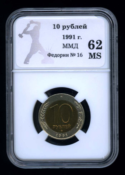 10 рублей 1991 ММД. В оригинальном сертифицированном слабе® MS 62 (СССР)