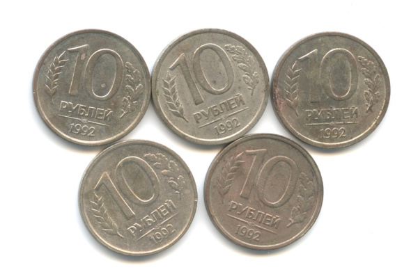 Лот монет «10 рублей — не магнитные». 5 шт 1992 (Россия)