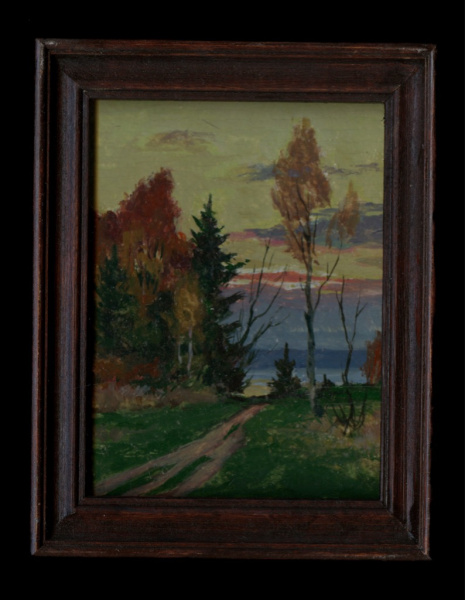 Картина «Осенний мотив». Автор Ю.А. Напардин, Санкт-Петербург. Размер 10,5×13,5 см 1994 (Россия)