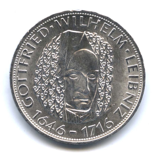 5 марок — 250 лет со дня смерти Готфрида Вильгельма Лейбница (Юбилейная монета) 1966 (Германия)