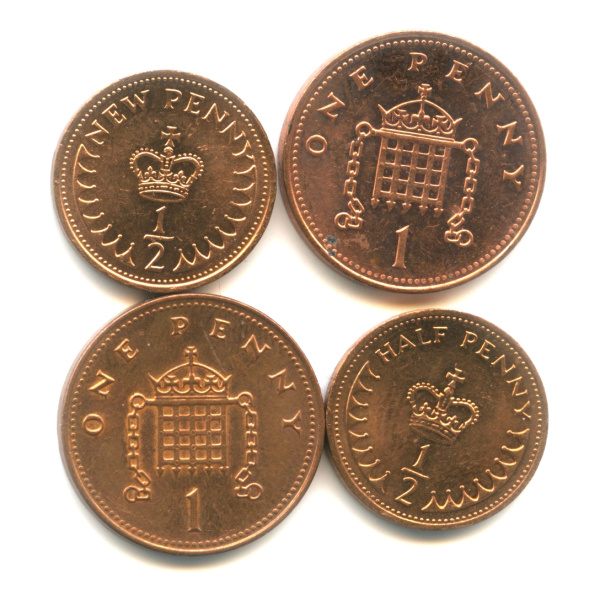 Лот монет «½ пенни, 1 пенни 1971−2007 гг». 4 шт. Штемпельский блеск (Великобритания)