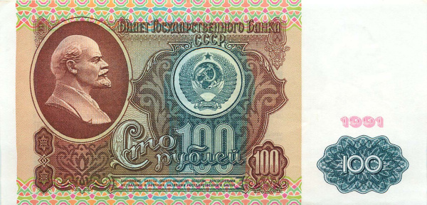 100 рублей — 1 выпуск 1991 АА-ЭЯ (СССР)