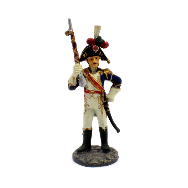 Фигурка оловянного солдатика «Тамбурмажор полка пеших егерей Старой гвардии, 1808−1810». Размер 3×8 см