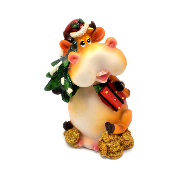 Фигурка в рождественской тематике «Корова с елкой и подарком». Пластмасса. Размер 7,5×12 см