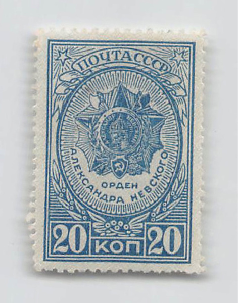 Негашеная почтовая марка. Орден Александра Невского 20 к 1944 (СССР)