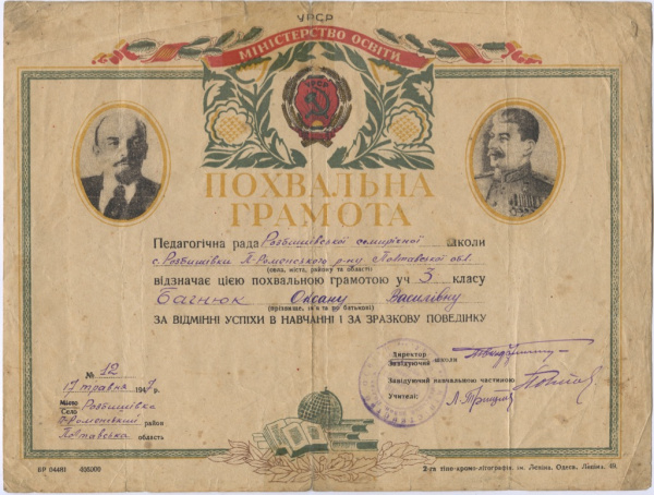 Почетная грамота. Бумага 1947 (СССР)