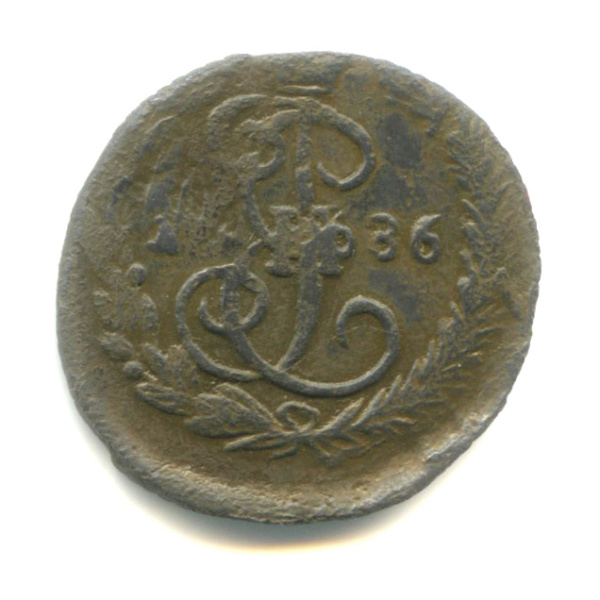Полушка (¼ копейки) — Вензель императрицы Екатерины II Великой 1771 ЕМ (Российская Империя)