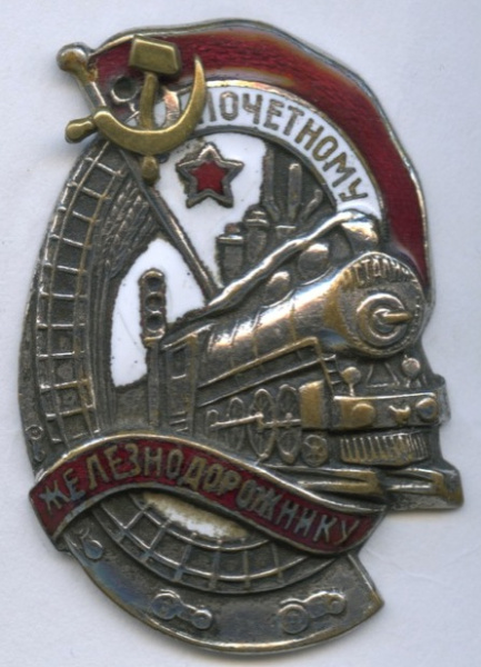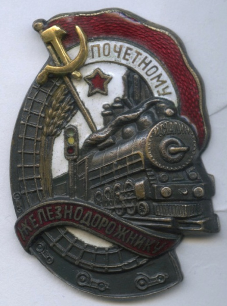 Знак «Почетному Железнодорожнику». Крепление: винт. Тяжелый, редкий, эмаль. оригинал состояние. номерной (СССР)