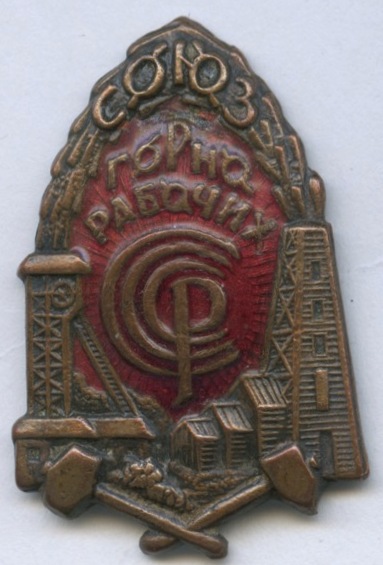 Знак «Союз Горно Рабочих». Крепление: винт. Тяжелый, редкий, эмаль. оригинал состояние (СССР)