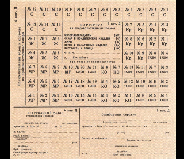 Талон на продовольственные товары спецснабжения «закрытых» городов. Категория № 6. Печать Гознака, водяные знаки 1970−е 1970-е (СССР)