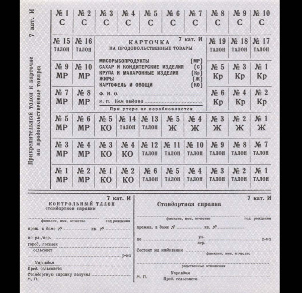 Талон на продовольственные товары спецснабжения «закрытых» городов. Категория № 7. Печать Гознака, водяные знаки 1970-е 1970−е (СССР)