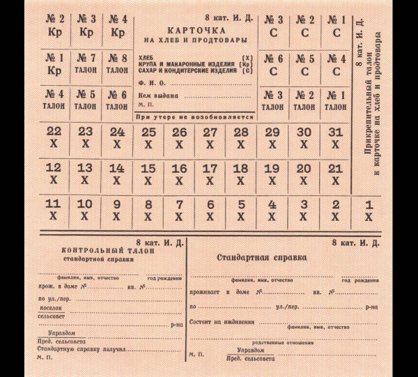 Талон на продовольственные товары спецснабжения «закрытых» городов. Категория № 8. Печать Гознака, водяные знаки 1970-е 1970−е (СССР)