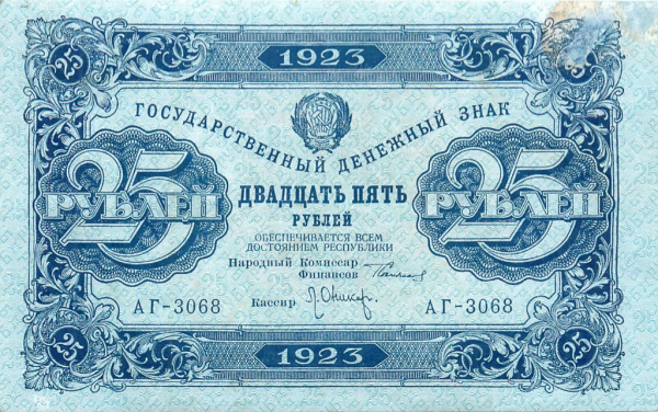 25 рублей — 1 выпуск. Нарком фин. Сокольников. Оникер 1923 - (СССР)