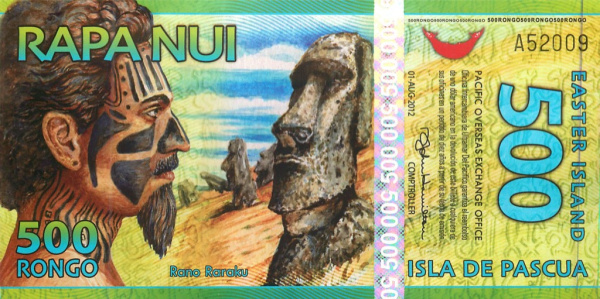 500 ронго 01.08.2012. Остров Пасхи. Банкнота выпущена специально для коллекционеров и не является официальной денежной единицей 2012