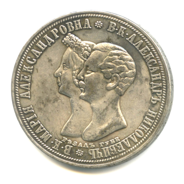 Копия монеты «1 рубль 1841 — Александр Николаевич (будущий император Александр II) и великая княгиня Мария Александровна»