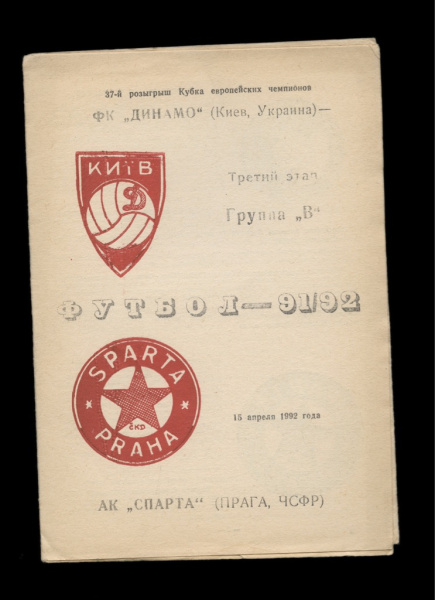 Программа футбольная «ФК „Динамо“, Киев» — АК «Спарта», Прага 1992 (Россия)
