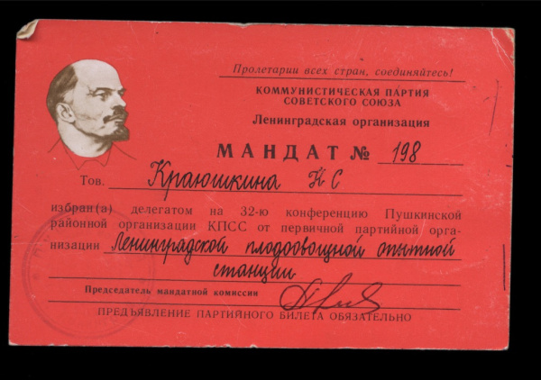 Мандат делегата на 32-ю конференцию Пушкинской районной организации КПСС (СССР)