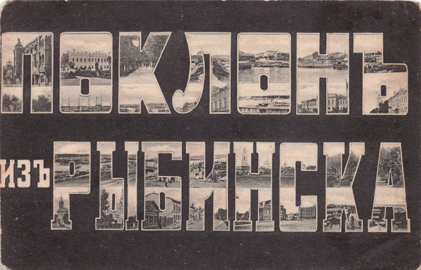 Карточка почтовая «Поклон из Рыбинска» (Российская Империя)