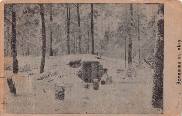Карточка почтовая «Землянка в лесу» (Российская Империя)