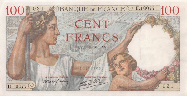 100 франков (Pick: # 94) 1940 (Франция)