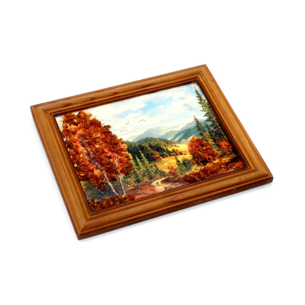 Картина «Природа». Размер 17×14 см. украшенная янтарём