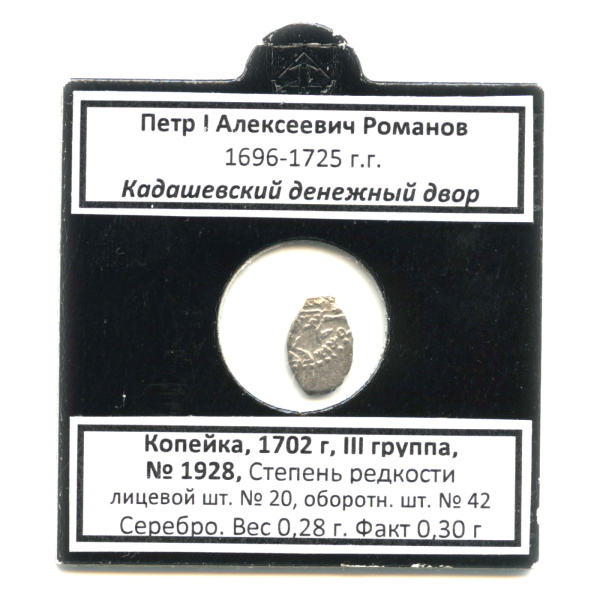 1 копейка — Петр Алексеевич Романов, ГК-1928 1702. В холдере (Русское царство)