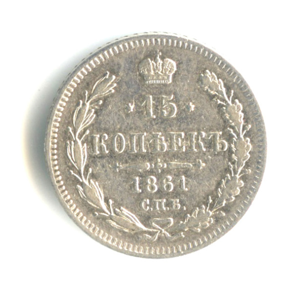 15 копеек — Новый орел 1861 CПБ (Российская Империя)