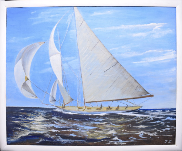 Картина «Яхта под всеми парусами». Автор: Галина Гусева. Масло, холст. Размер 43×54 см