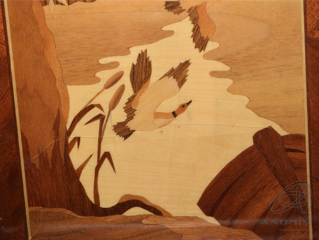 Панно декоративное в технике маркетри «Пейзаж». С дарственной табличкой на обороте. Размер 29×42 см