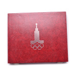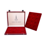 Футляр для монет 5 рублей и 10 рублей «Олимпийские игры, Москва 1980». 28 ячеек. Размер 27×23 см