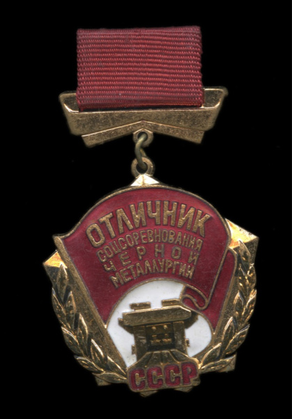 Знак «Отличник социалистического соревнования черной металлургии СССР». ММД. Крепление: булавка. Тяжелый, эмаль