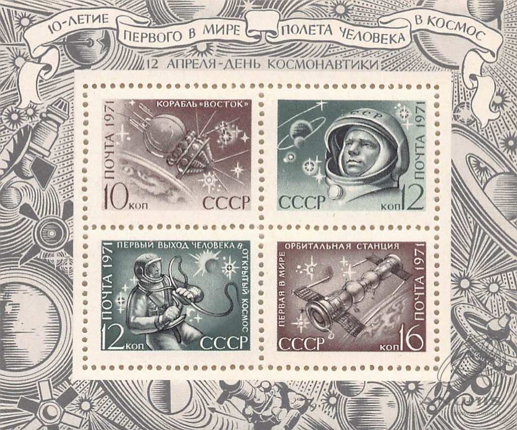 Блок почтовый «К 10-летию первого полета человека в космос»