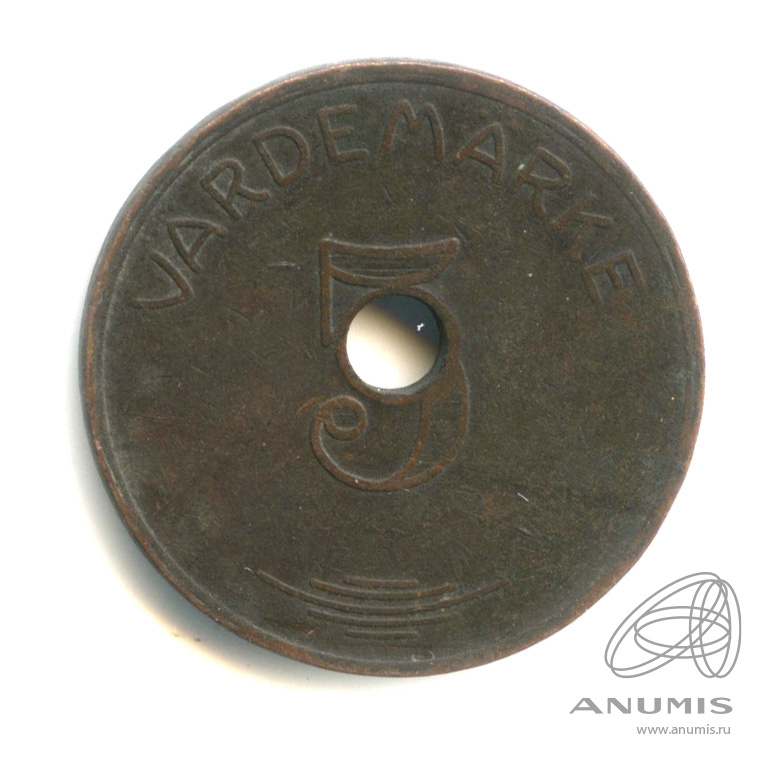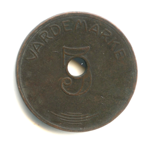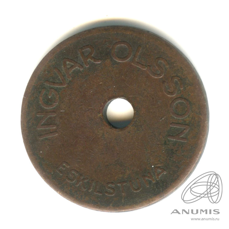 Жетон для игровых автоматов 5 эре. Cu/Zn. INGVAR OLSSON ESKILSTUNA/ 5 VÄRDEMÄRKE. М — 7,56 г