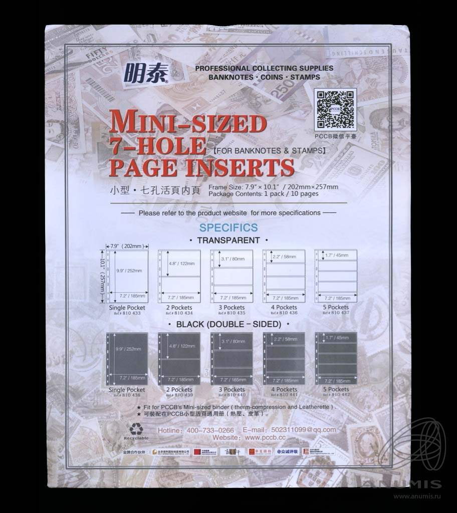 Лист предназначен для хранения 3х бон банкнот или другого коллекционного материала размером для 57*185мм.