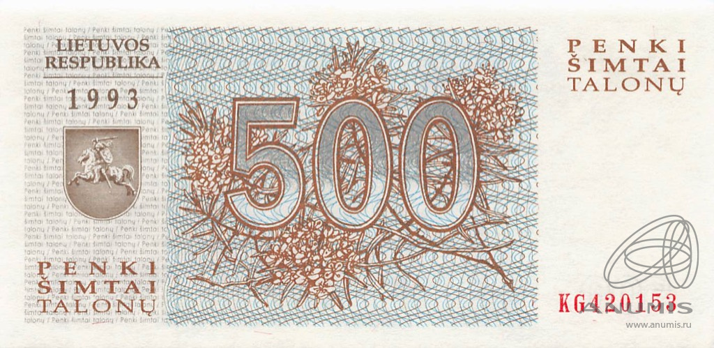 Банкнота «500 талонов 1993» (Литва)