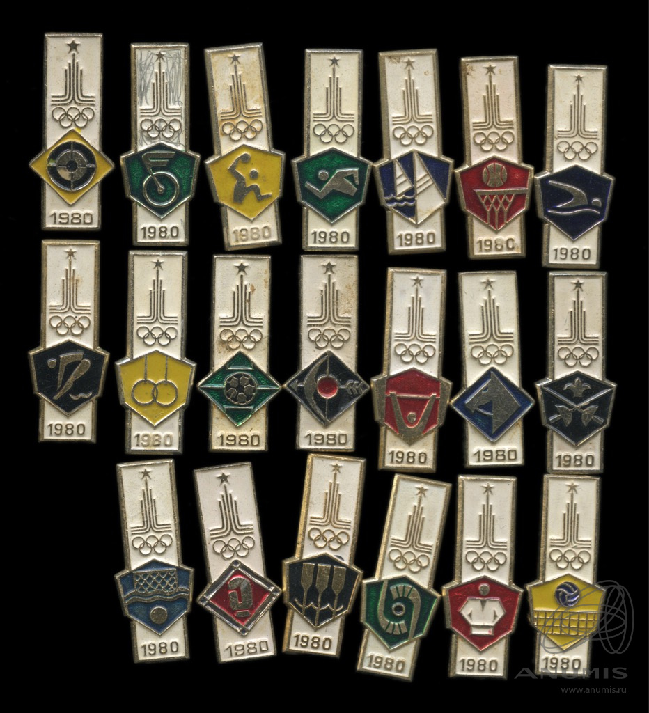 Лот значков «Олимпиада, Москва 1980. Виды спорта». 20 шт