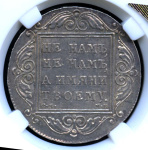 Монета регулярного выпуска: 1 рубль 1799 года. 1 рубль 1798 — 1801 гг. Российская Империя: Павел I (1796 — 1801). Монетный двор: Сузунская монета, г. Сузун. Серебро 868, 21 г, ø 37 мм, Гурт: Надпись. Тираж: 3123985 шт.