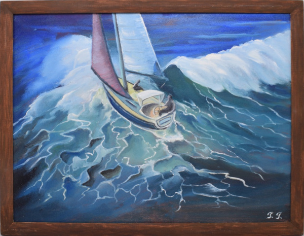Картина «Яхта на волне». Автор: Г. Гусева. Масло, холст. Размер 43×33 см